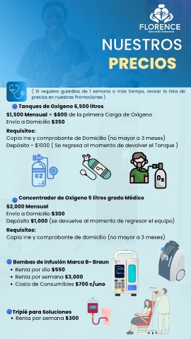 $1,500 Mensual + $800 de la primera Carga de Oxígeno